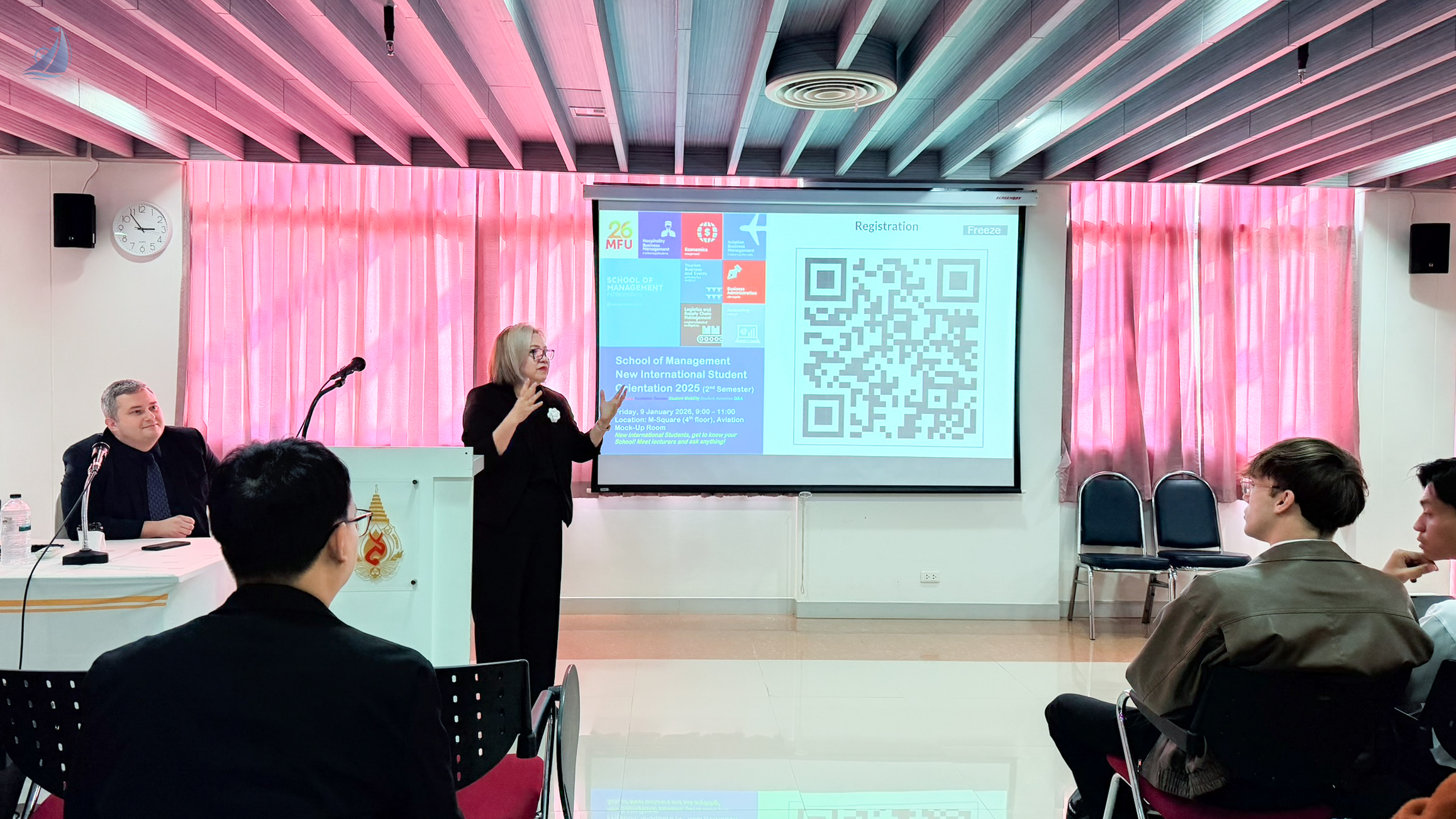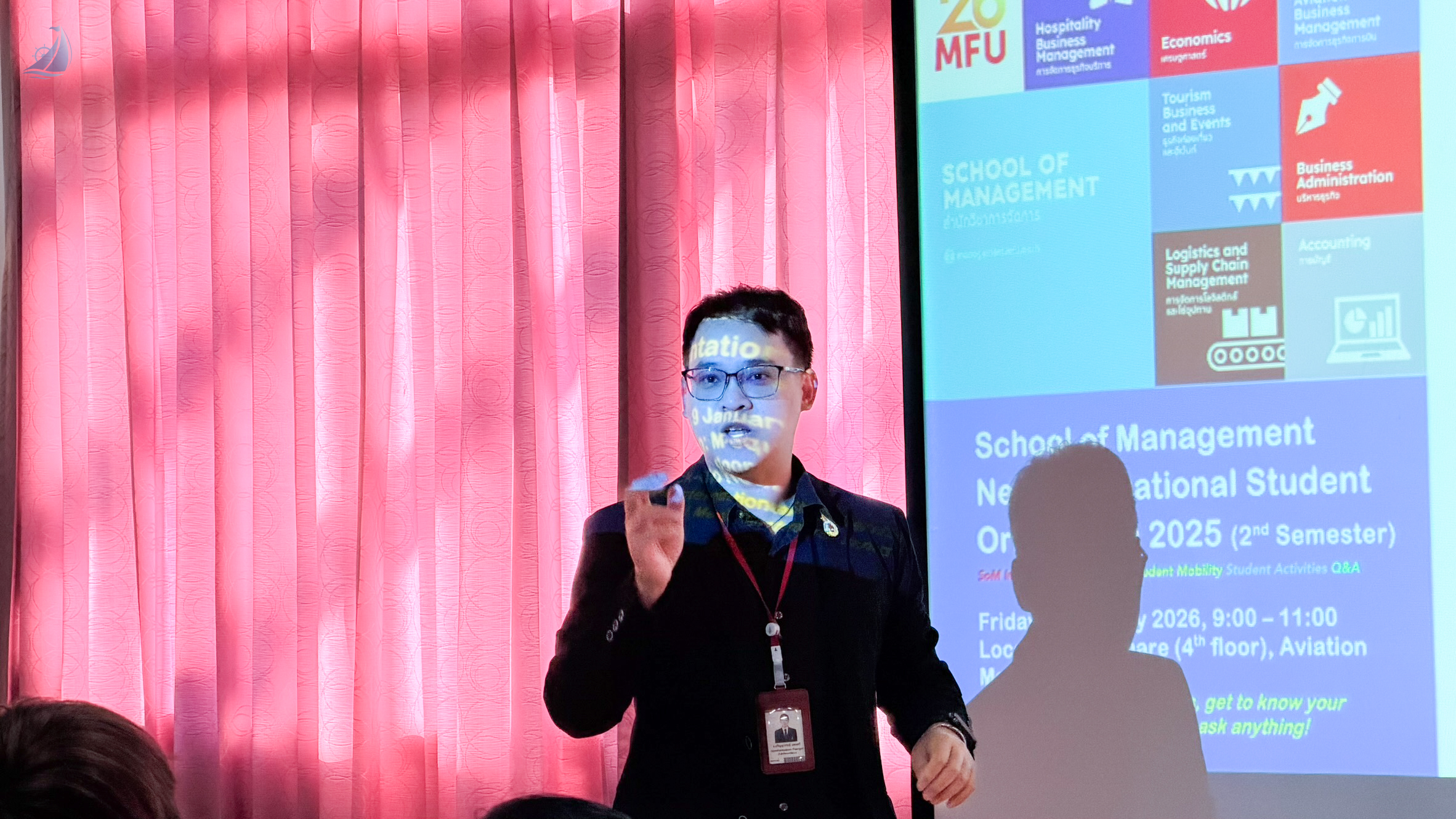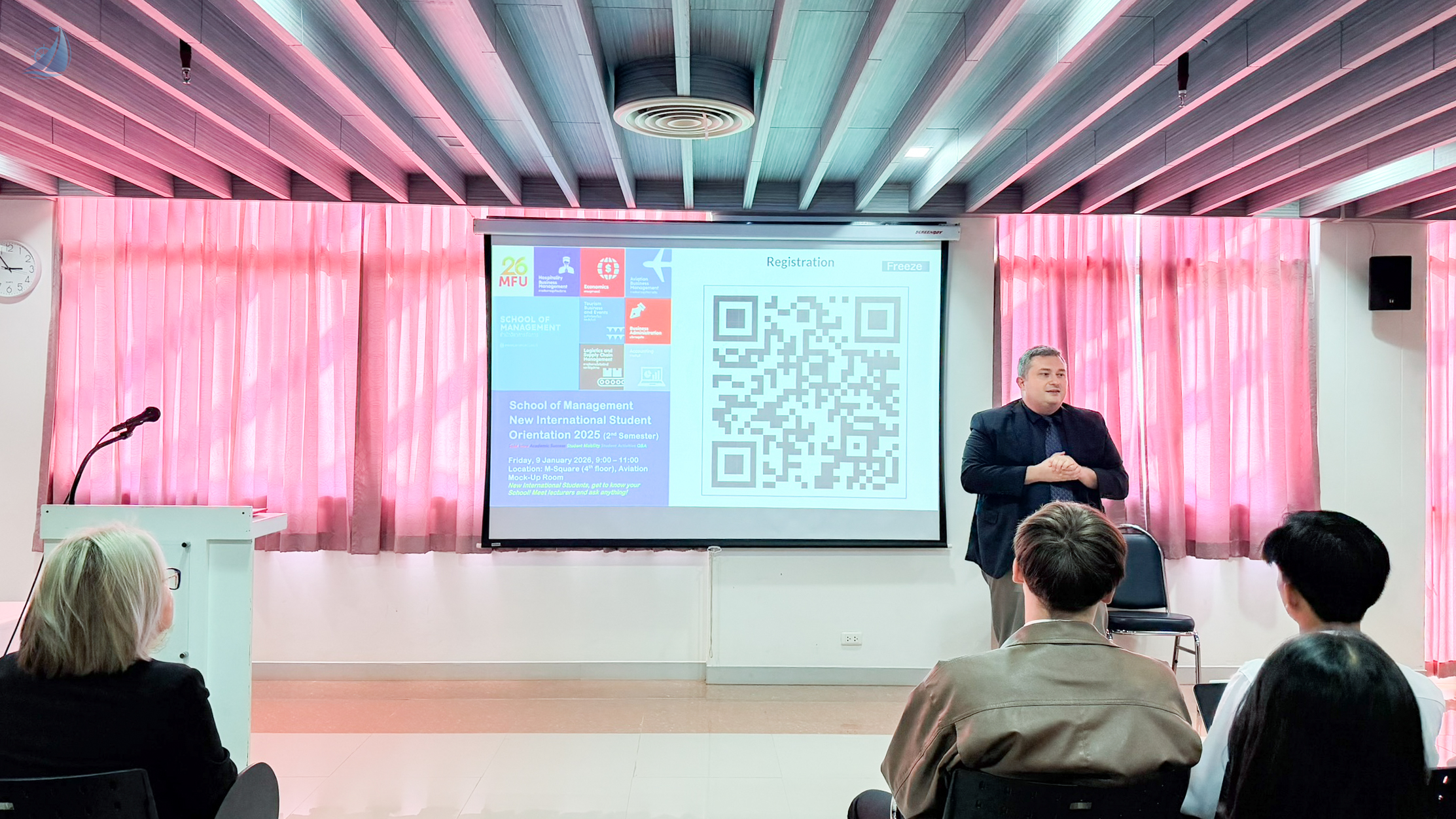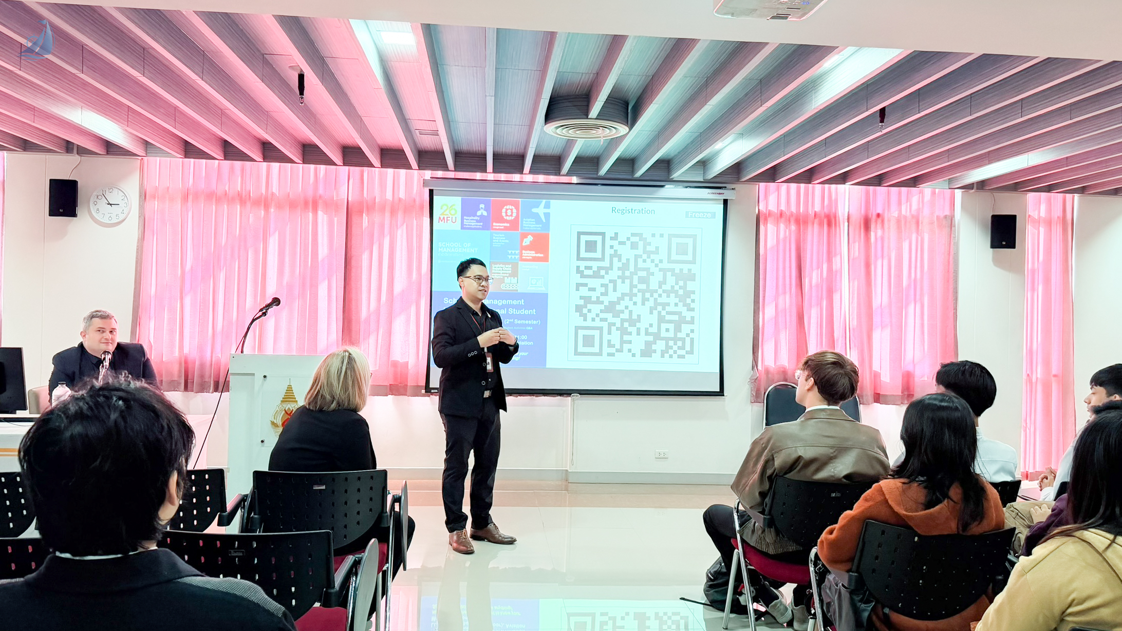 On Tuesday, January 9, 2026, the School of Management (SoM) at Mae Fah Luang University organized the International Student Orientation for Semester 2, Academic Year 2025. The event took place at the ABM Mock Up Room, 4th Floor, M-Square Building, from 9:00 AM to 11:00 AM.