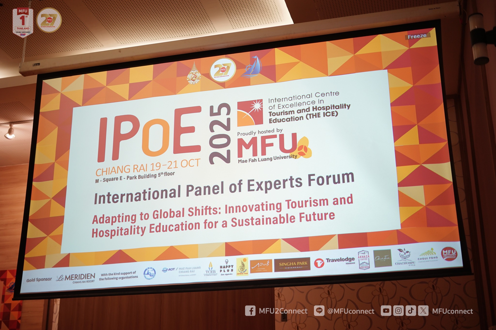 Mae Fah Luang University (MFU) hosted the international academic conference, THE-ICE 18th IPoE Forum 2025, from October 19-21, 2025, at the M-Square Building, Mae Fah Luang University, and Le Méridien Chiang Rai Resort. This conference serves as a crucial global platform for education in tourism, hospitality, and events management, with academics, institutional leaders, and leading entrepreneurs from various countries attending to exchange knowledge and experiences.